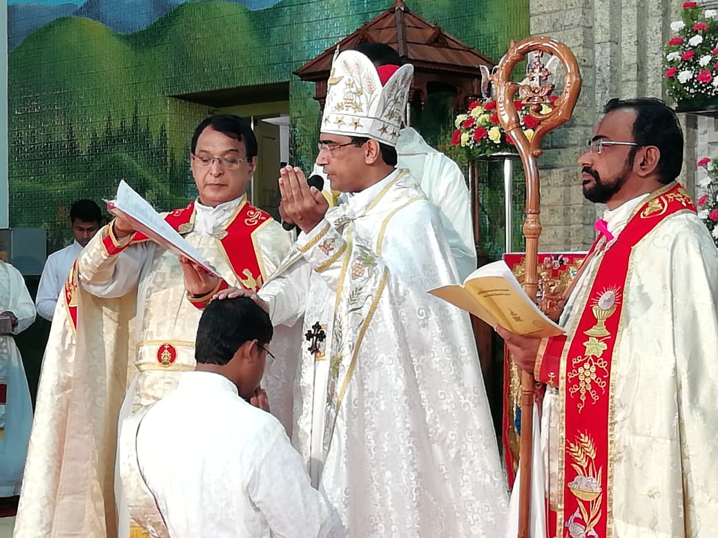 Palai, Indien. Am 10. Juni 2020 weihte Weihbischof Mar Jacob Murickan von der Diözese Palai Jissmon Kattakayam CMF von...